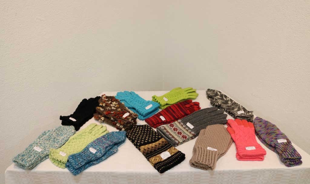 Cimdu dažādību izstādē parāda arī Laidzes pagasta rokdarbnieču interešu pulciņa vadītāja Irēna Lozbere un rokdarbnieces Dace Ērgle, Antra Ķiršakmene, Ingrīda Krūmiņa, Baiba Pudure.