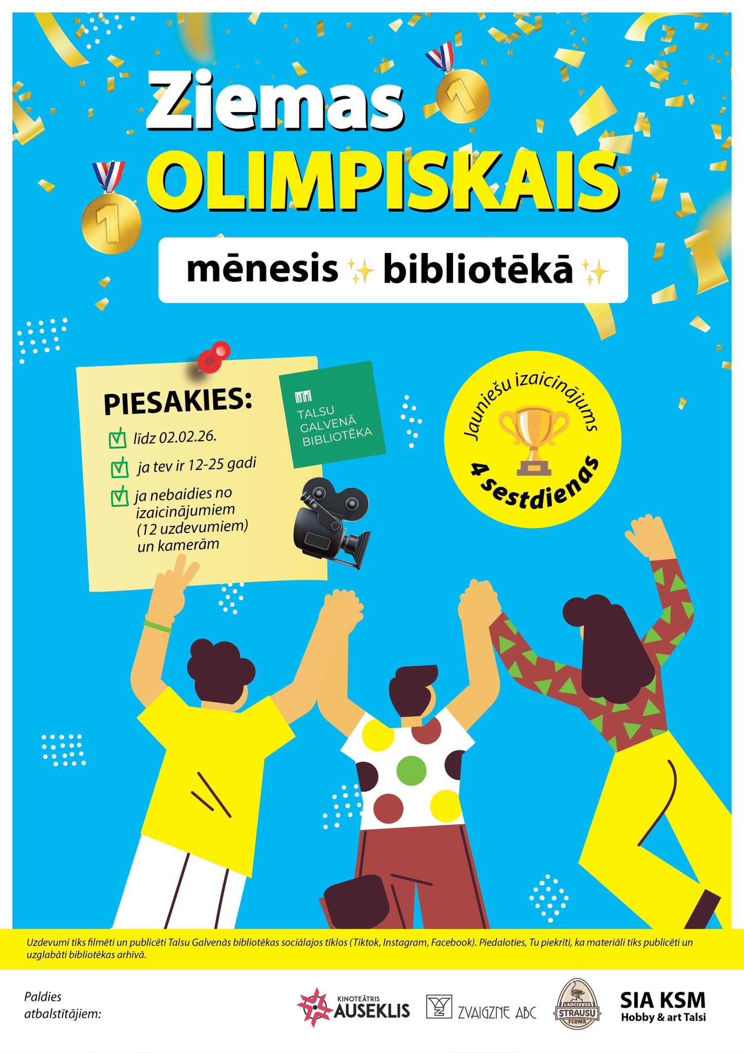 Talsu Galvenā bibliotēka aicina jauniešus vecumā no 12 līdz 25 gadiem piedalīties jauniešu izaicinājumā „Ziemas olimpiskais mēnesis bibliotēkā”!